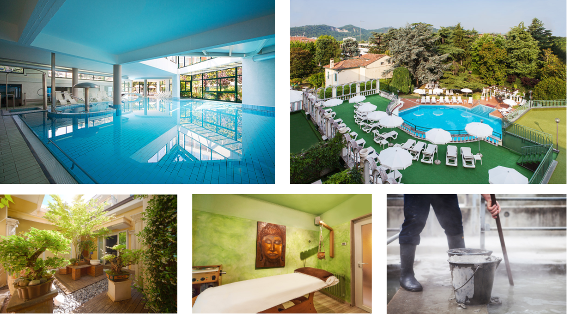 CM39 ha realizzato il servizio fotografico di interni, per restituire quei concetti di eleganza e ospitalità, relax e benessere con un occhio di riguardo alla salute, emozioni che contraddistinguono la struttura che presenta numerosi servizi, trattamenti e cure (fanghi termali, piscine termali, trattamenti con argilla verde etc..) degni di una Beauty farm.