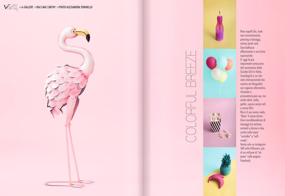 “Riae capelli blu, look non convenzionale, piercing e tatuaggi anima punk rock. […] E’ oggi la più importante amazzone del movimento delle Suicide Girl in Italia…” Così esordisce la rivista “Vimagazine” parlando del servizio fotografico realizzato da Alessandra Toninello per CM39 ADV. “Una sovrabbondanza di tatuaggi tra cartoon, animali e donne e due scritte sulle mani “outsider” e “self-made”